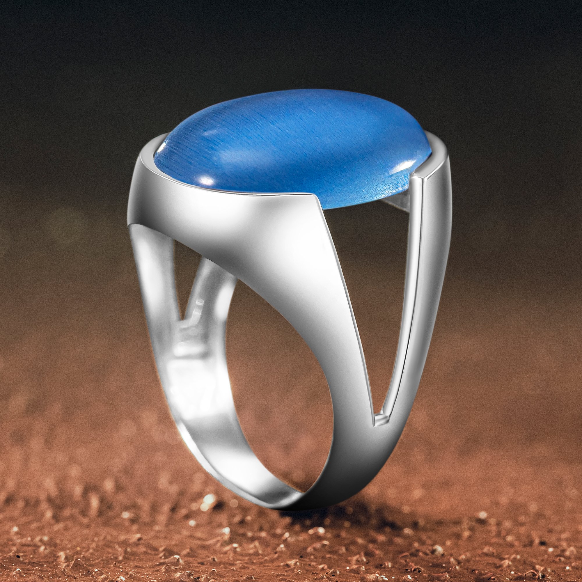 خاتم فضة عيار 925 مزين بحجر أزرق عقيق