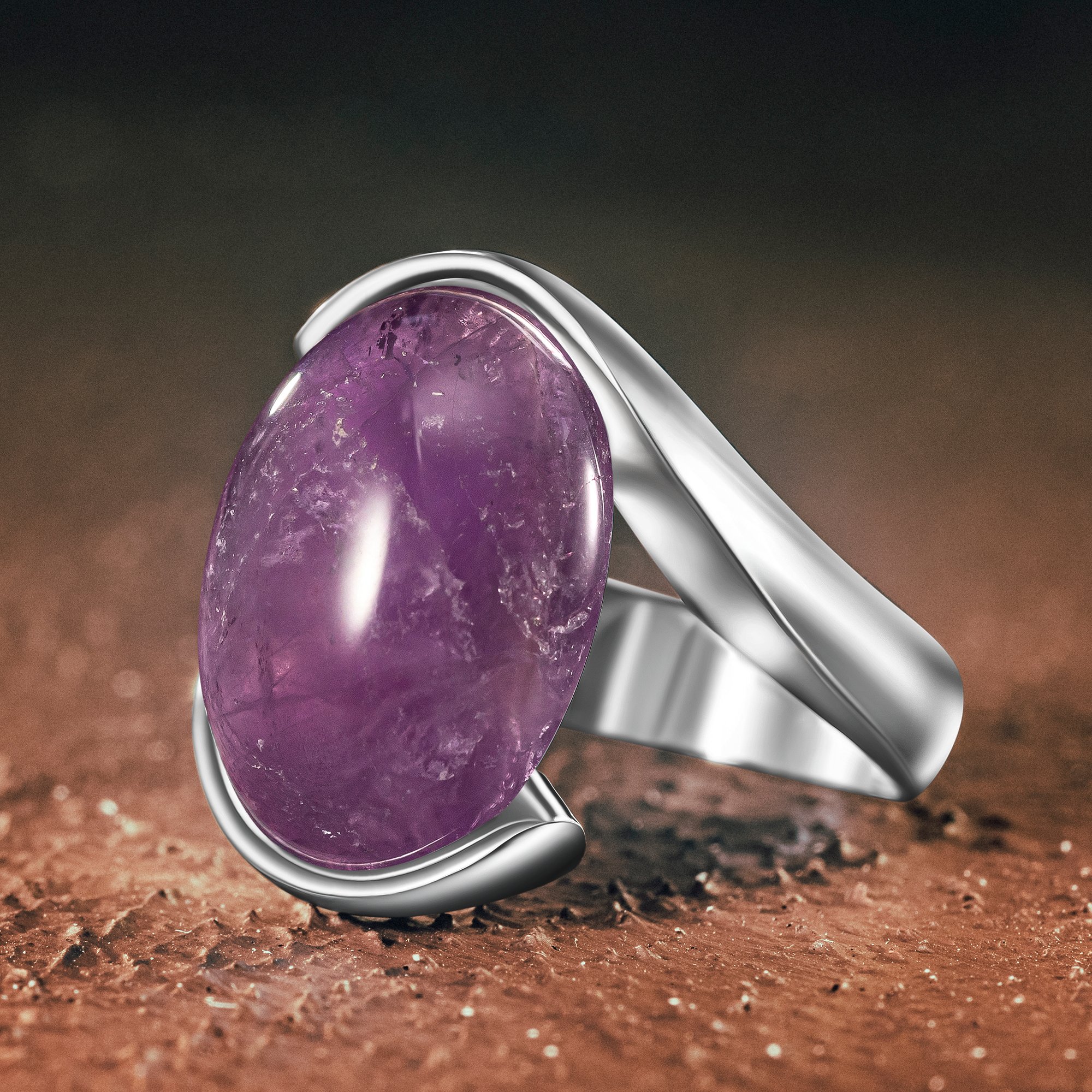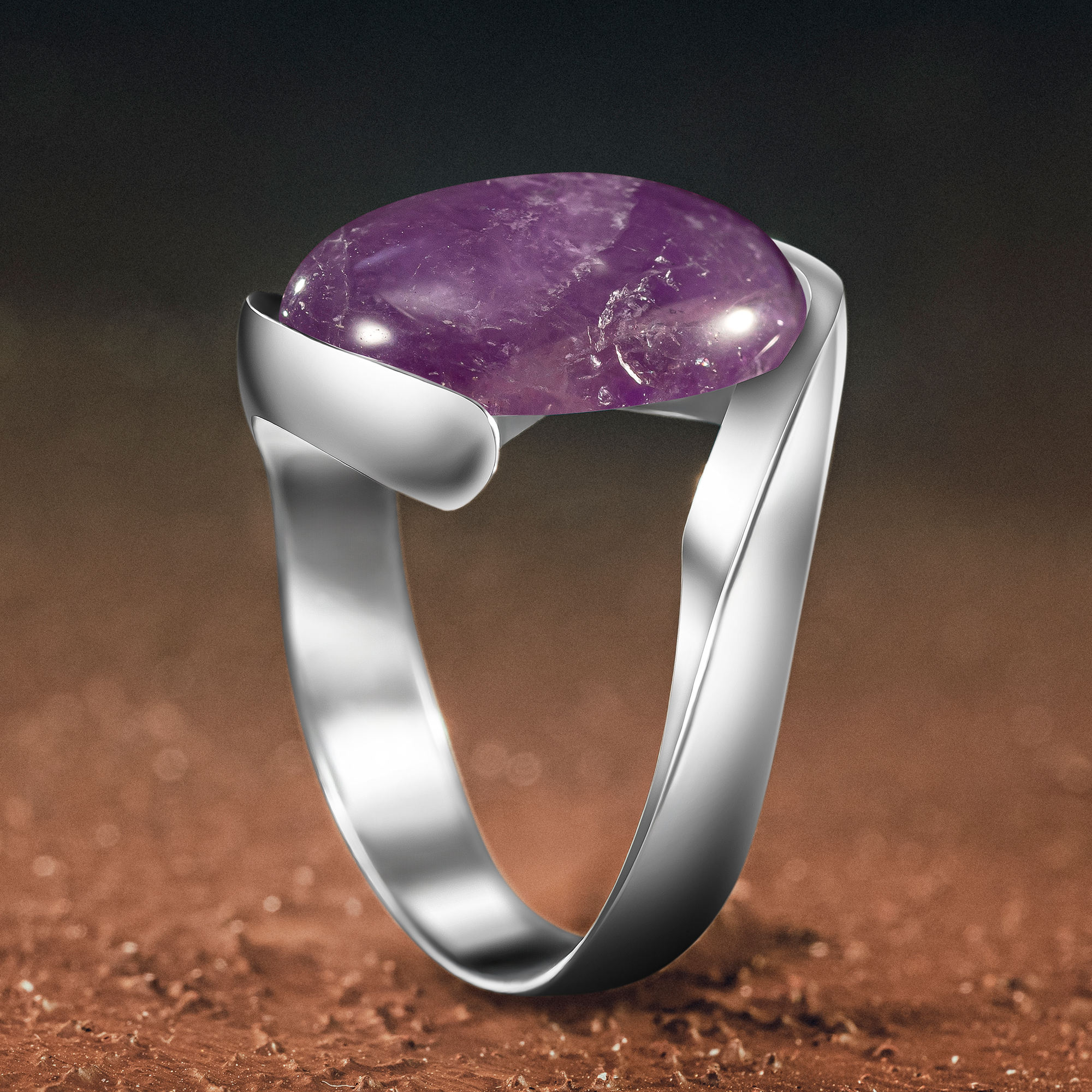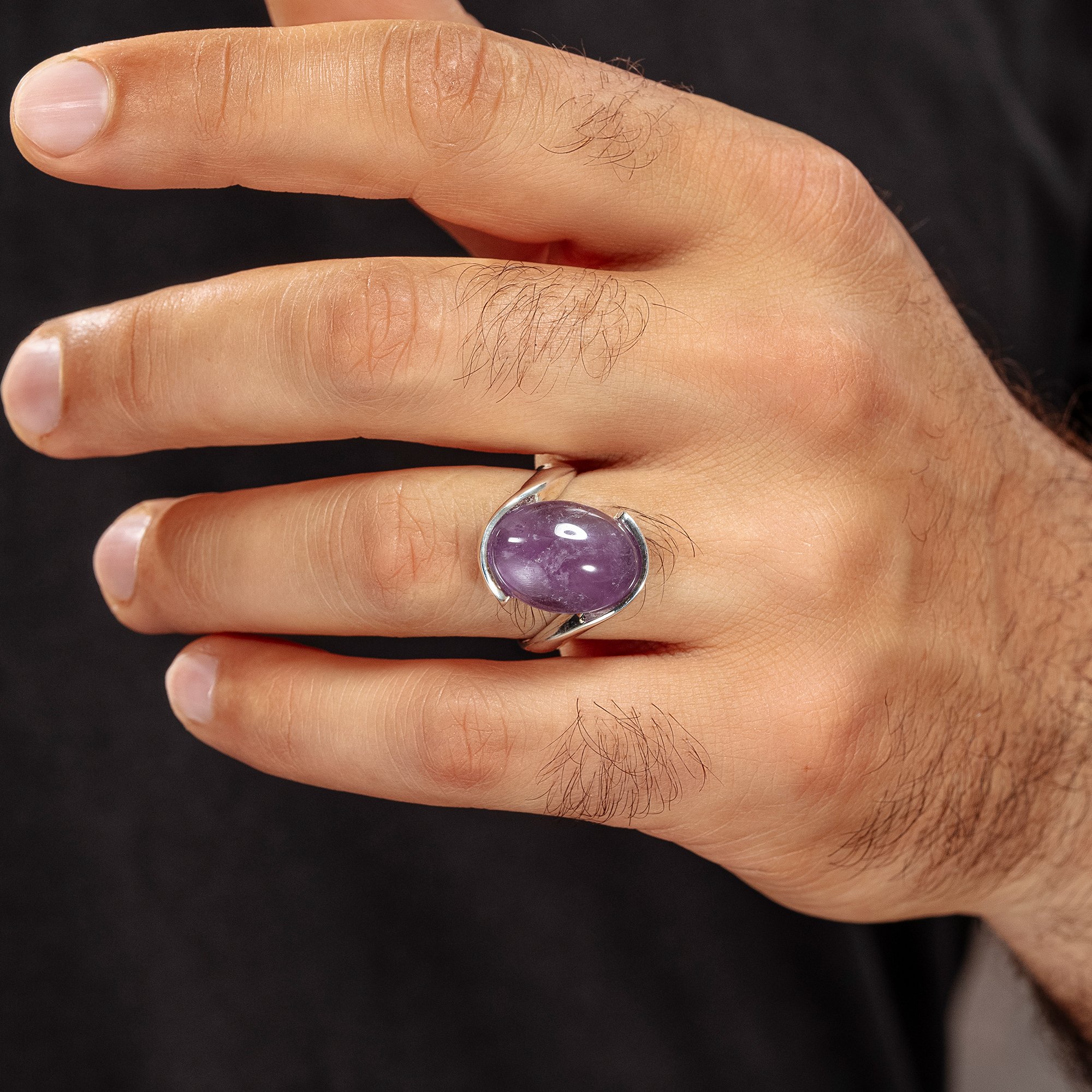 خاتم فضة عيار 925 مزين بحجر ارجواني عقيق