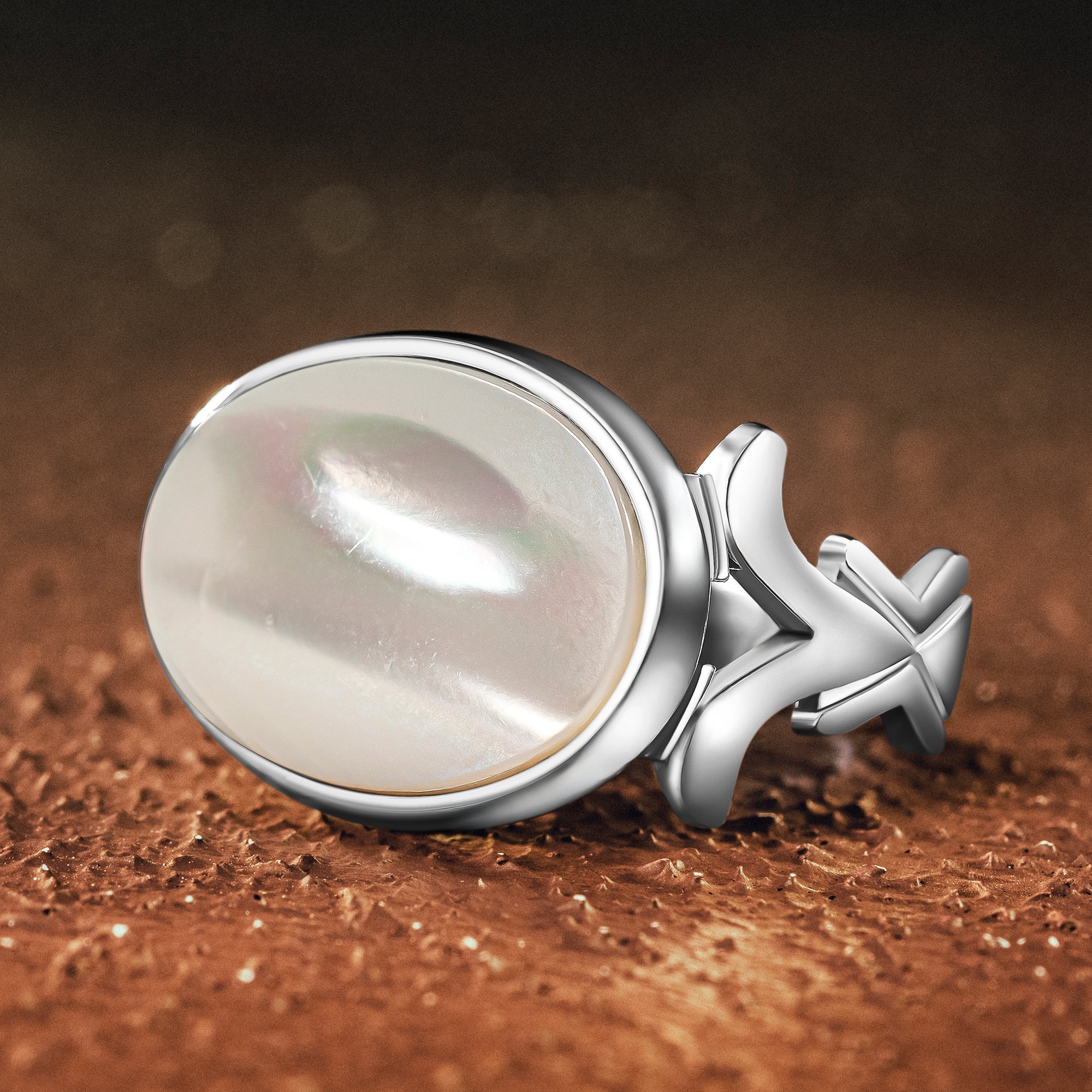 خاتم فضة عيار 925 مزين بحجر صدفي طبيعي