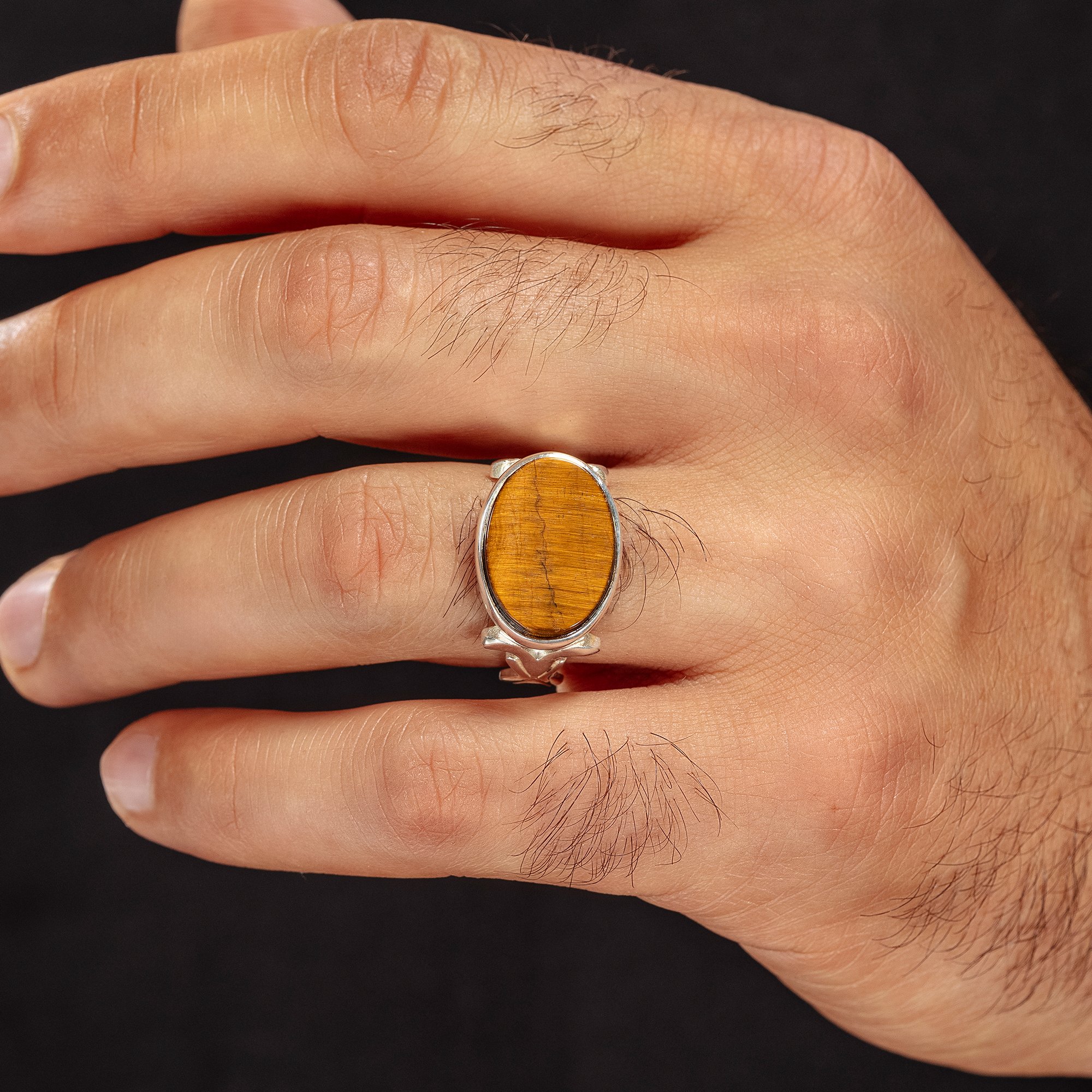 خاتم فضة عيار 925 مزين بحجر عين النمر طبيعي