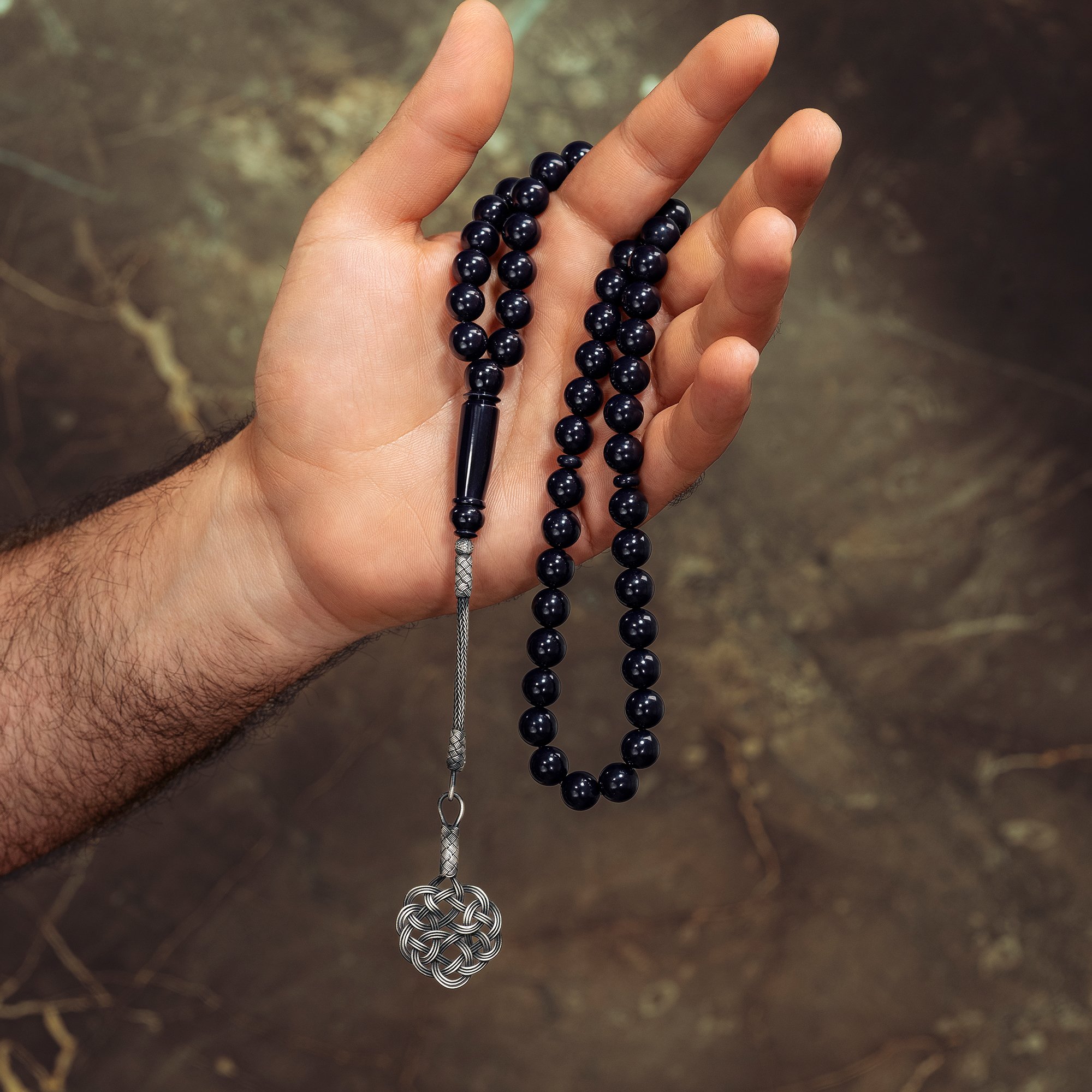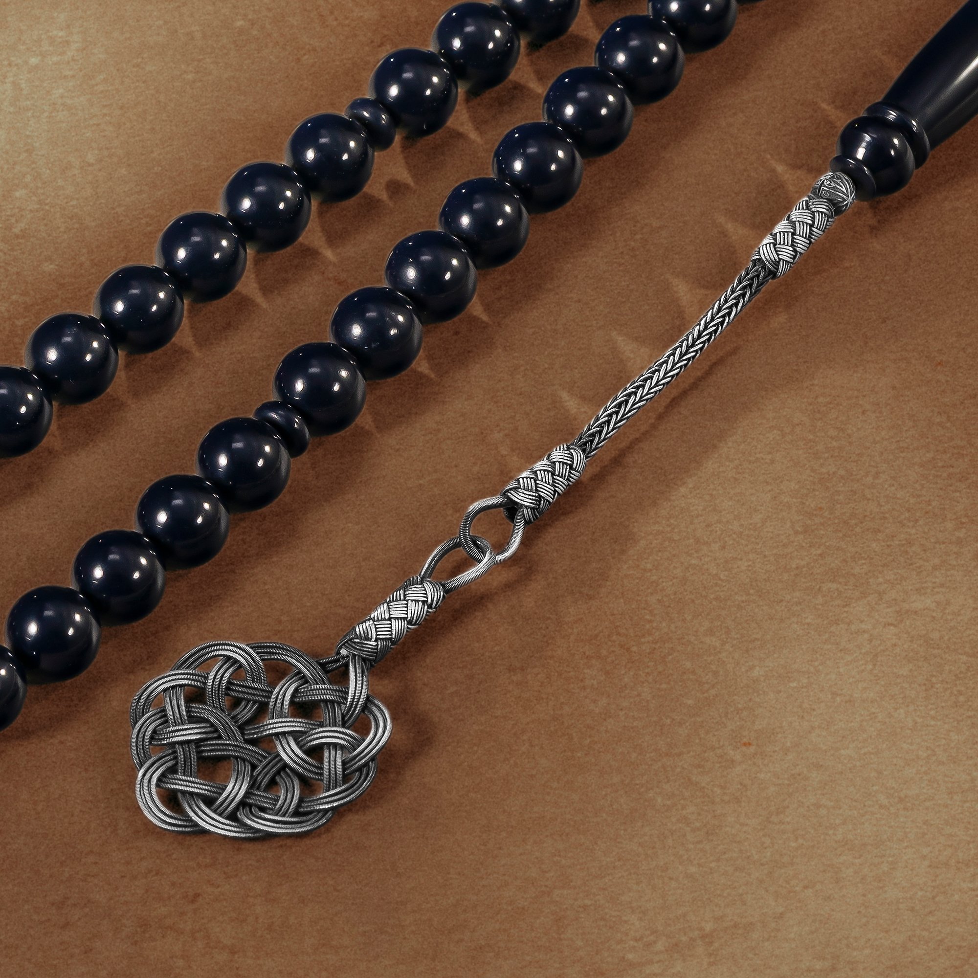 سبحة بكلايت أسود ملكي - طربزونة فضة عيار ١٠٠٠
