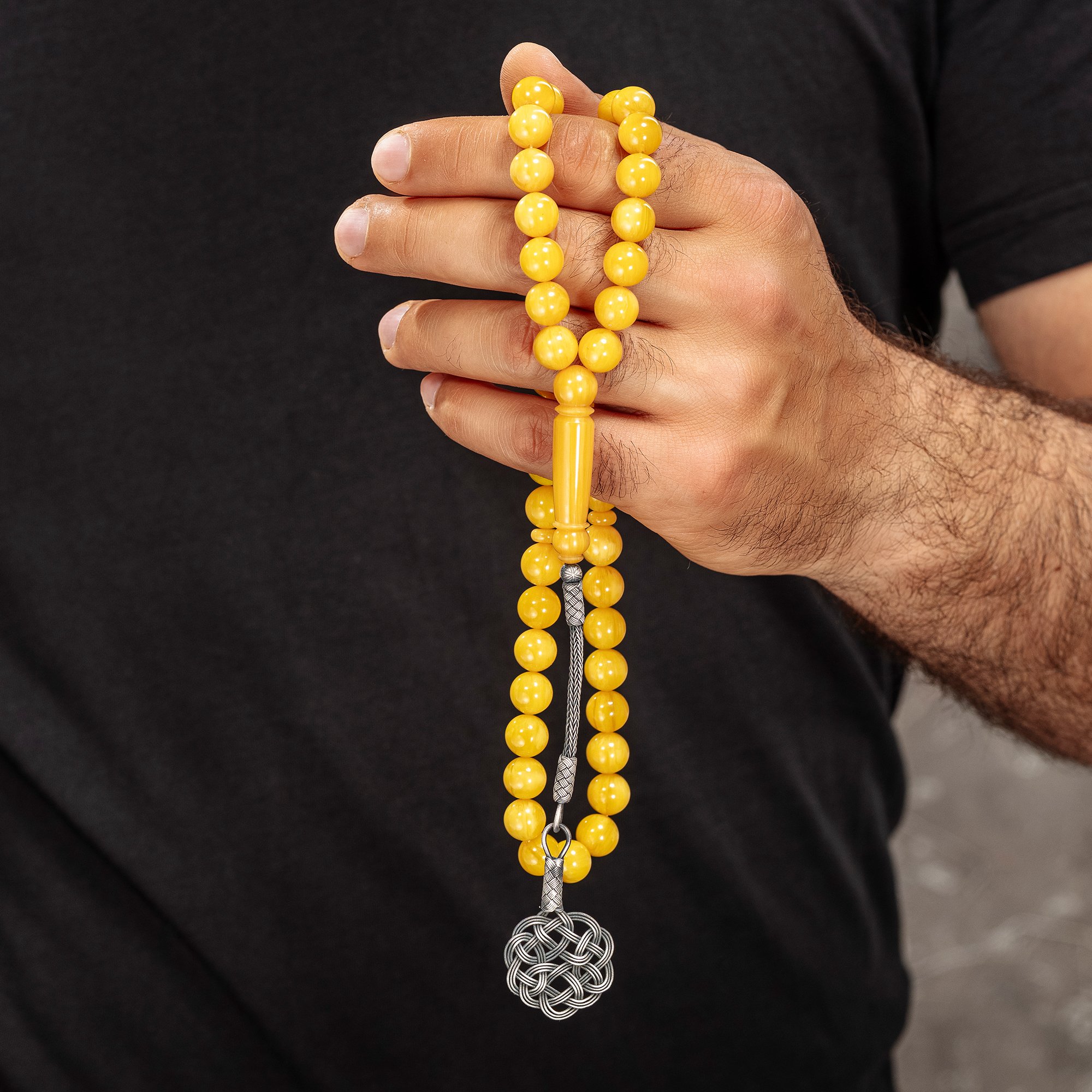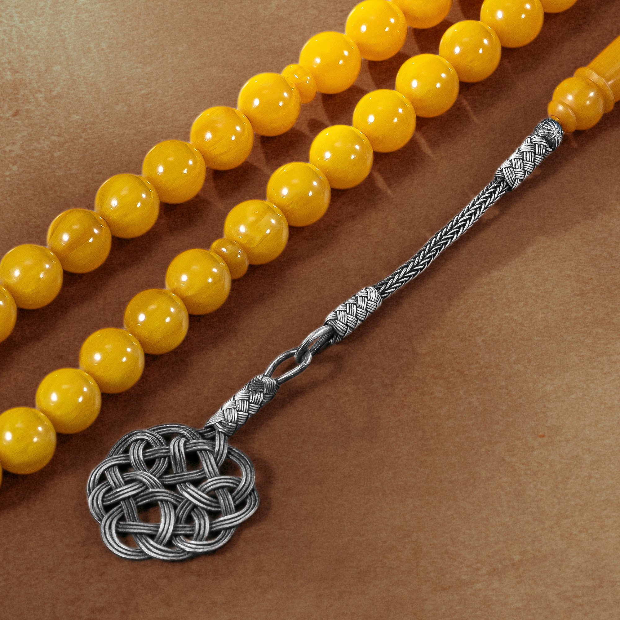 سبحة بكلايت أصفر مخلوط - طربزونة فضة عيار ١٠٠٠