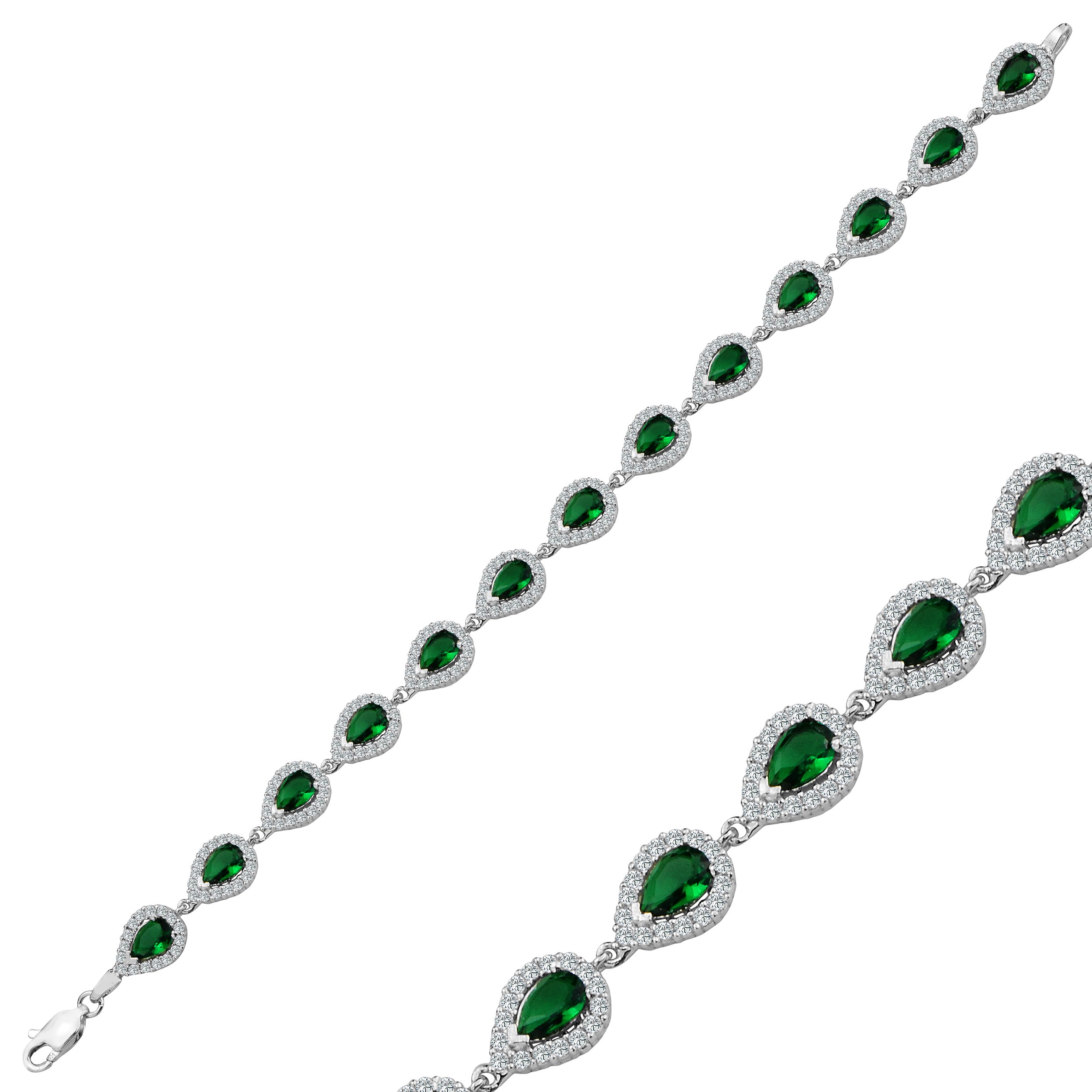 - طقم كامل متناسق (عقد قطرات زمردية + أقراط متدلية + خاتم زمردي + سوار قطرات)