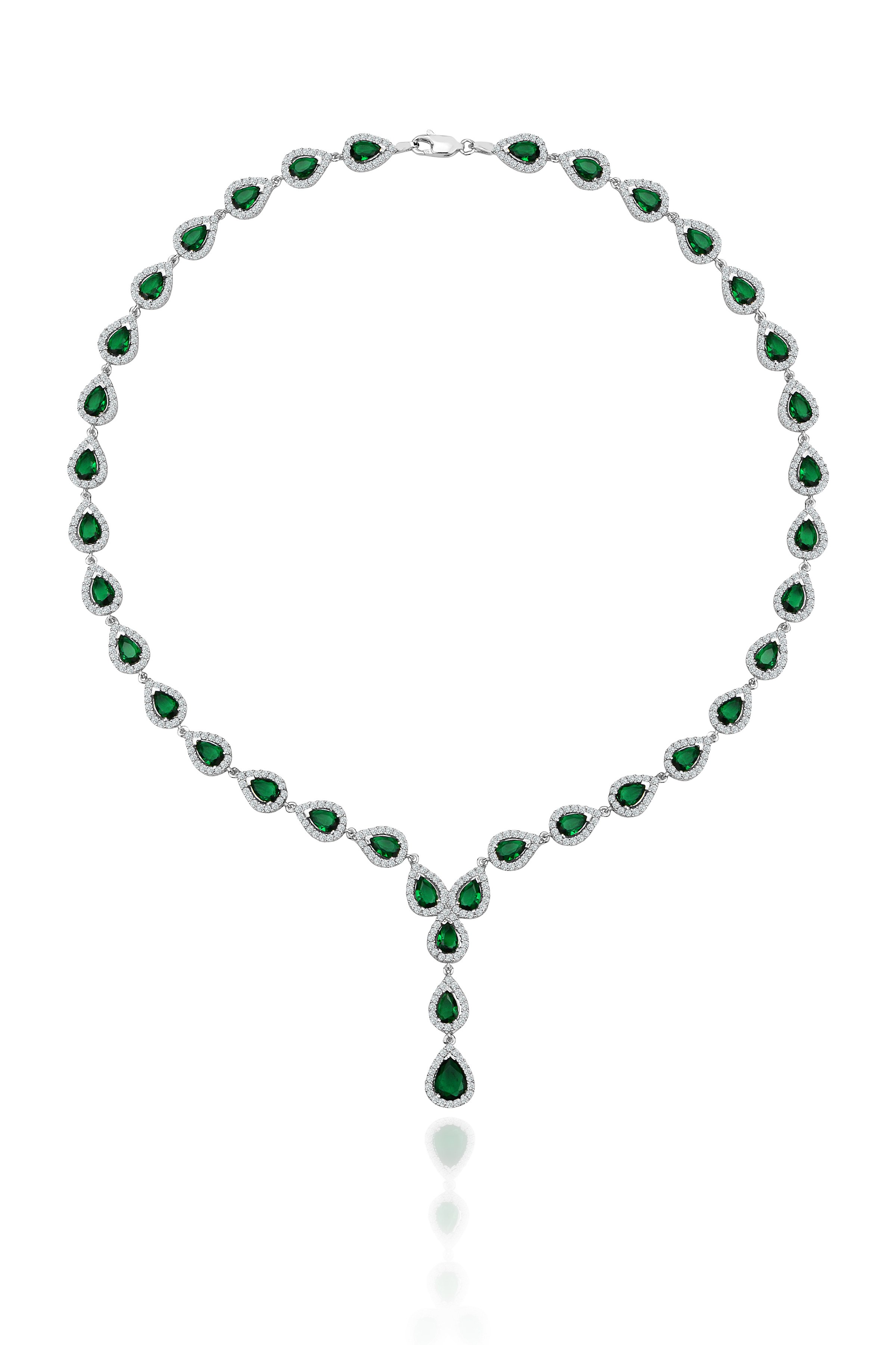 اكتشفي قوة الأناقة العصرية مع طقم قطرات الزمرد الملكية المصنوع من أجود أنواع الفضة الإسترليني عيار 925 مع طلاء الروديوم النقي. تصميم عصري يجمع بين الكلاسيكية والحداثة في تناغم مثالي، حيث تتوهج الأحجار الزمردية في تصميم القطرة العصري مع تدرج أنيق يعكس شخصيتك القوية والمتطورة ويخلق حضوراً مميزاً يجذب كل الأنظار بأناقة عصرية.